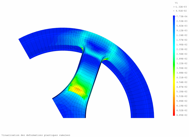 La modélisation correspond à une jante en aluminium soumise à un déplacement imposé au niveau du moyeu.