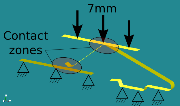This contribution mainly focuses on the use of Salome, Code Aster and particular howto deal with shell elements and contact. So I do not focus on the results and the mechanical justifications of the code that has been used. So no guarantee that the results will be correct up to five decimal places, which they are probably not. I do hope though that this information is useful. For me it has been, because I had to think about some commands and look through the documentation and learn from that. In case of mistakes, errors or remarks, please notify me, or better, you are invited to correct or edit them yourself. Enjoy.
